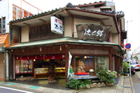 In Kitashinmachi through with the Kumano Kodo pilgrimage route passes and that is in the center of Tanabe, there is a Japanese confectionery called Tsuji no Mochi with a sign that says, “Okeshi mochi.” The shop was founded during the mid-1800s and is known for its mochi snacks.